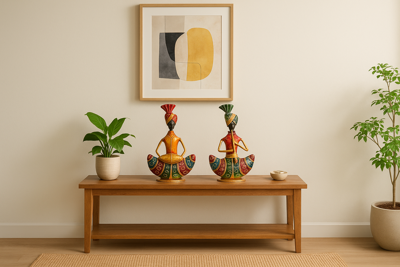 The Iron Indian Handmade Hand Painted Showpiece is a beautiful and unique piece of home decor, perfect for adding a touch of elegance and sophistication to any living space.